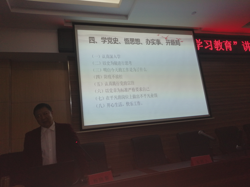 動員結(jié)束后,緊接著由市委黨校楊曉黎教授為我們作了精彩的“黨史學(xué)習(xí)教育”專題報(bào)告。楊教授為我們解讀了中國共產(chǎn)黨由誕生、發(fā)展、壯大到建立新中國,以及帶領(lǐng)全國人民建設(shè)小康社會艱難而輝煌的革命歷程。同時(shí)楊教授也結(jié)合自己對黨史的研究體會,以豐富的史實(shí)、鮮明的觀點(diǎn)、精辟的語言,向我們闡述了中國共產(chǎn)黨100年艱苦卓絕的風(fēng)雨歷程,總結(jié)出沒有共產(chǎn)黨就沒有新中國的偉大真理。報(bào)告深入淺出、內(nèi)容豐富,對我們加強(qiáng)黨的歷史和思想政治理論學(xué)習(xí),進(jìn)一步提高黨性修養(yǎng),具有很強(qiáng)的理論指導(dǎo)作用。報(bào)告很受教育,很受啟發(fā),收獲很大。會議最后,集團(tuán)總支副書記汪明星要求廣大黨員干部認(rèn)真學(xué)習(xí)領(lǐng)會,掌握實(shí)質(zhì),以飽滿的工作熱情和扎實(shí)的工作作風(fēng),認(rèn)真履行職責(zé),努力工作,為公司的發(fā)展壯大貢獻(xiàn)力量。