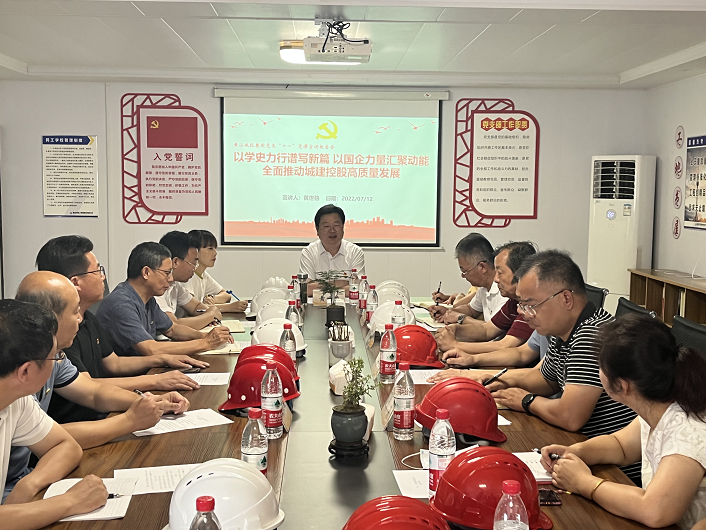 2022年7月12日上午,黃山城投集團(tuán)黨委副書記、董事、總裁黃世穩(wěn)同志冒著酷暑來到黃山建工集團(tuán)共建合作單位文瀾軒“工地黨?!睘槲覀冎v授專題黨課,參加黨課的有城投集團(tuán)工程部總監(jiān)汪潤(rùn)蘭同志、黨群工作室副主任王蘊(yùn)寒同志,城建控股、建工集團(tuán)總支班子成員、黨員代表40余人。