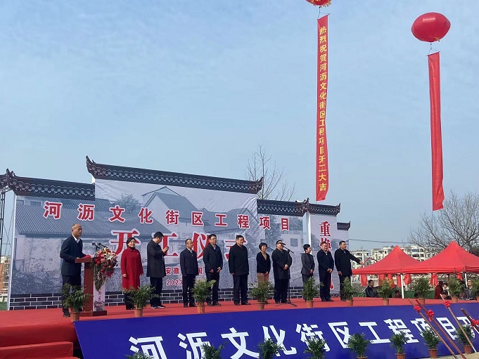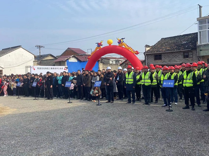 黃山建工集團董事長項端陽、總經(jīng)理葉金發(fā)、副總經(jīng)理吳學武及項目負責人和部分施工人員參加了寧國市河瀝溪文化街區(qū)工程項目的開工盛典。