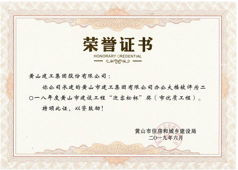 2019年度黃山市建設(shè)工程優(yōu)質(zhì)工程獎
